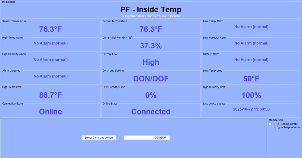 I think there is possibly a bug in selecting the Fahrenheit temperature reading for a Yolink temperature sensor in a program. I'm working on displaying various Yolink temperature sensors in UD mobile. I have a program that reads a temperature sensor and assigns the temperature to a variable. When I check the variable it always shows the Celsius temperature regardless of selecting Fahrenheit or Celsius in the drop down box. When I check the node in PG3 it shows the correct temperature in Fahrenheit. I also have an Ambient Weather station and if I select Fahrenheit for it's temperature sensor I gets the correct number. In the PG3 Yolink configuration I have TEMP_UNIT set to F Is this correct? How does this interact with the Program dropdown selection of Fahrenheit vs Celsius?