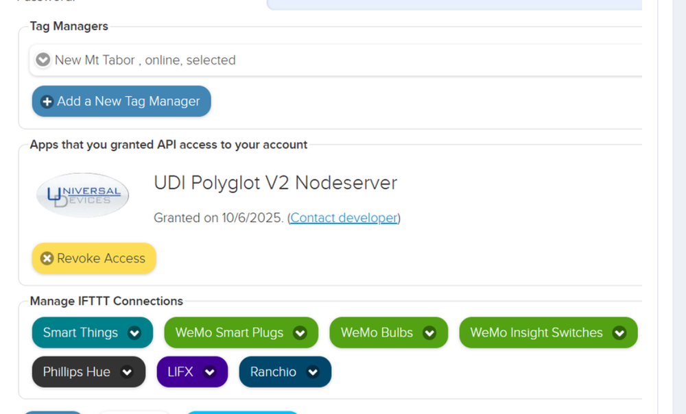 This has been going on for a while. I have tried installing wireless tag via pg2 and pg3x and it is the same result. I have tried creating a whole new account with wireless tag to see if it was a quirk with the account and it didn't fix it. The wireless tag account says that authorization has been granted. But the nodeserver is not getting access. It gives me an error when I authorize UD to access wireless tag. Despite the error, wireless tag lists UD as having access, but like I said, the nodeserver denies that it has access. This is the error message that comes up after I grant permission. Despite the error, wireless tag lists UD as having access I tried creating a new user account and I get the same result. I have revoked access and regranted it multiple times and each time it is the same. When I try to authorize, I get the following screen. I click to authorize, and then I get that error screen. If I click to deny, I also get the error screen with just one word different. EDIT: Also, this used to work. I had this same wireless tag account linked for years. Something happened and I reinstalled the node and this is the result.