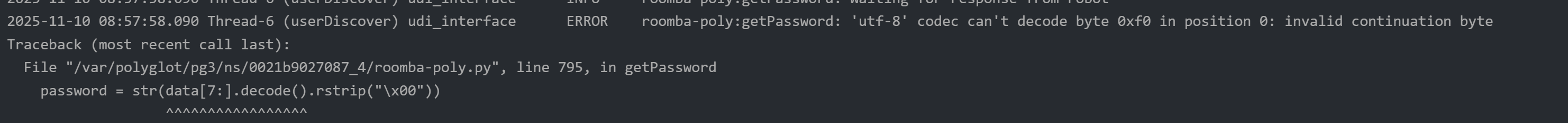 Well Roombas were working with 2, 0, 14 version and made the mistake of upgrading to the latest version 2.0.17. to see if it worked and installed the nodes Nodes stayed after update but lost abilty to control the rommba from the plugin ( could no activate the roomba from plugin) deleted the nodes in eisy and the plugin and reinstalled program gives error same as Lore is seeing above when trying to parse the password tried what worked with version 2.0.14 with having the roombas in linking mode on plugin install and that no longer works gives the same error in parsing the password not sure if you can go back to a later version (2,0,14) to see if that still works Roomba_11-10-2025_90648_AM.zip