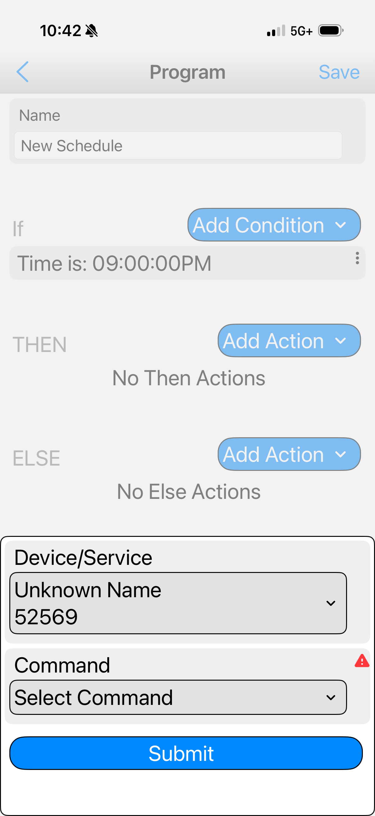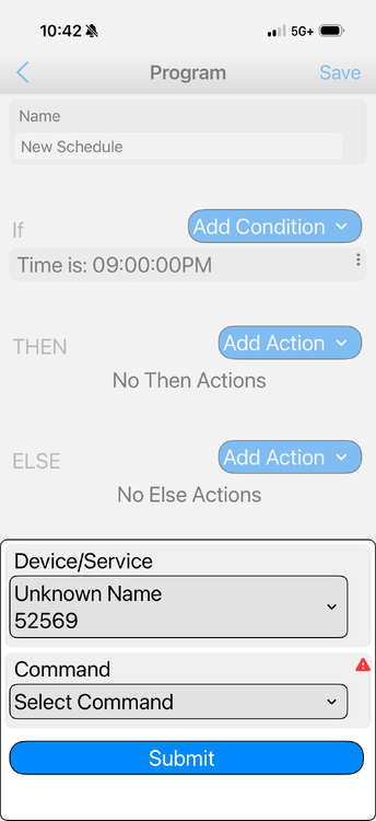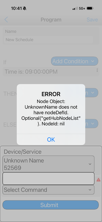 In UD mobile I can no longer program scenes. If a scene is included in a program, you cannot select the command without an error message. When you select the scene, Device Service shows Unknown Name and the scene number. See the attached images. I am on ver 6.0 and have the current version of UD-Mobil