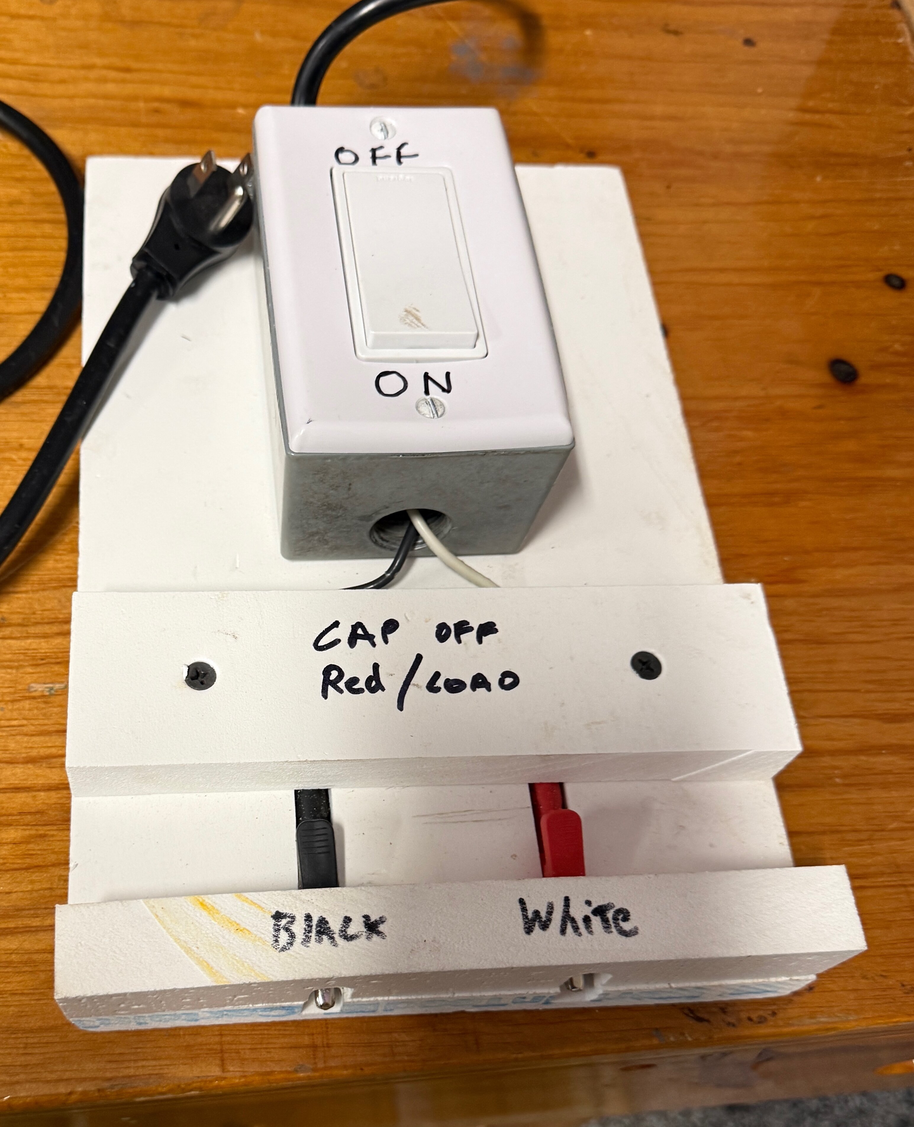 @Kentinada I finally got around to getting apicture of the device I built to easily and relatively safely hook up new switches to add / test etc. Here it is.. The alligator clips are "recessed" so I dont accidentally touch them while testing. for what its worth...