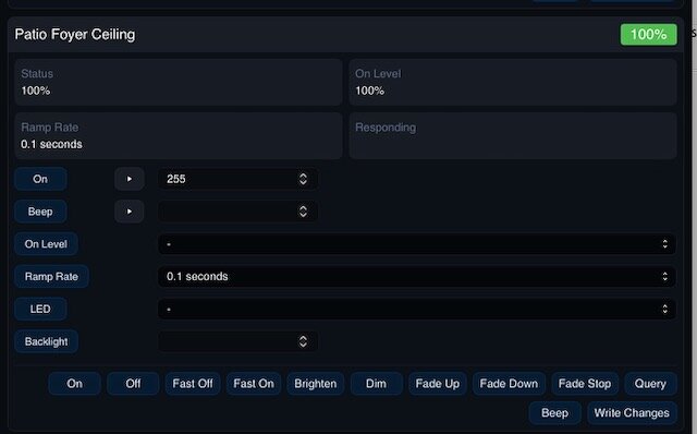 I recently updated to OS 14.3 and IoX 6.0.0, am just starting to do some testing, and am seeing some odd behaviors when looking at the configured values that show up for Insteon devices. While the data that appears in the java-based Admin Console seems fully populated and correct (meaning, as configured), the data doesn't always seem to populate in the eisy-ui interface either fully or correctly. Additionally, some of the values that populate are well beyond the expected ranges. For example, here are screenshots of data for one of my Insteon I3 paddle switches. In the java-based admin console, the On value is configured as 100% and the On Level is configured as 100%. But in eisy-ui, the On value shows as 255 and the On Level shows as blank. Running a query on the switch in eisy-ui didn't seem to change anything for those values. I'm also seeing some ramp rate defaults for several switches showing at 9 minutes instead of the usual 0.1 seconds, though that seems to clear up (at least in some cases) if I query the switch. It's almost like there are some default values that aren't translating properly or some kind of refresh isn't running when it should be. Anyone else seeing similar results?