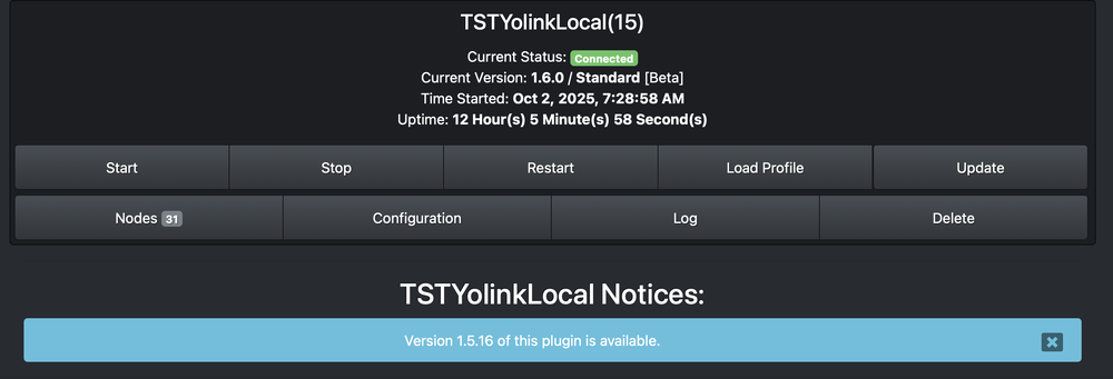 Just did the install of 1.6.0 & its crashing log files attached. In addition once you start the node, both local and regular, it seems you cannot hit the stop button and get it to stop. Tells you its not running. Is this a result of the initializing status. Means I had to delete the node to get it to stop. update: not just the local hub plugin ; the regular plugin is crashing and restarting as well. TSTYolinkLocal_10-1-2025_92945_PM.zip