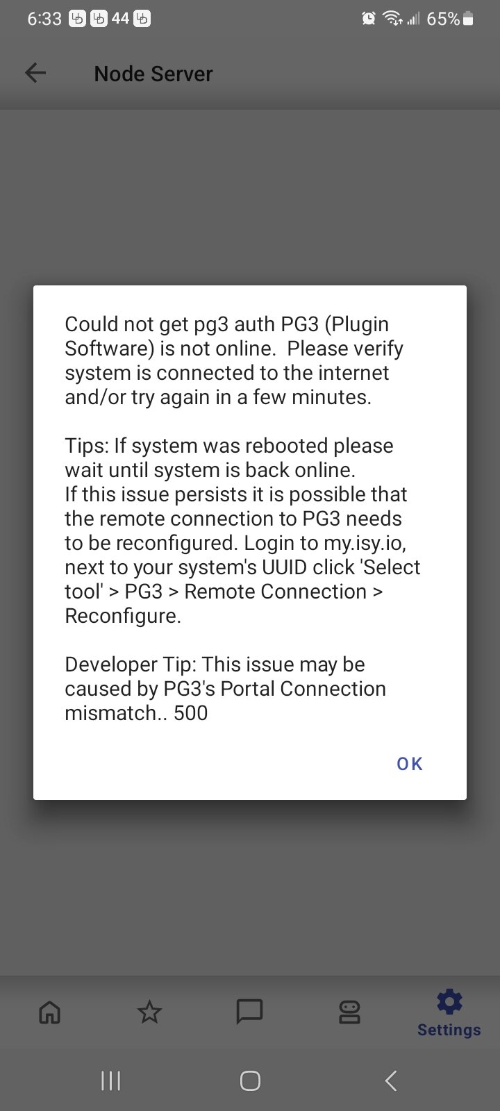 Interesting! Thank you for checking @oberkc. This is the only plugin out of like 20 that does this. It started with the first or second non-production YolinkLocal. I guess this indicates something on my end, but what? Weird. Question, when you resync UDM do you get the message to let the dev know about ST name for the nodeserver? That also started with one of the non-production versions as well. One last detail, if I go to settings plugins and select this plugin, wait 20 seconds or so then close the app, reopen the app and go to settings>plugins I get an error message of: "Could not get pg3 auth PG3 (Plugin Software) is not online. Then at the end it says :Developer Tip: This issue may be caused by PG3's Portal Connection mismatch. 500"