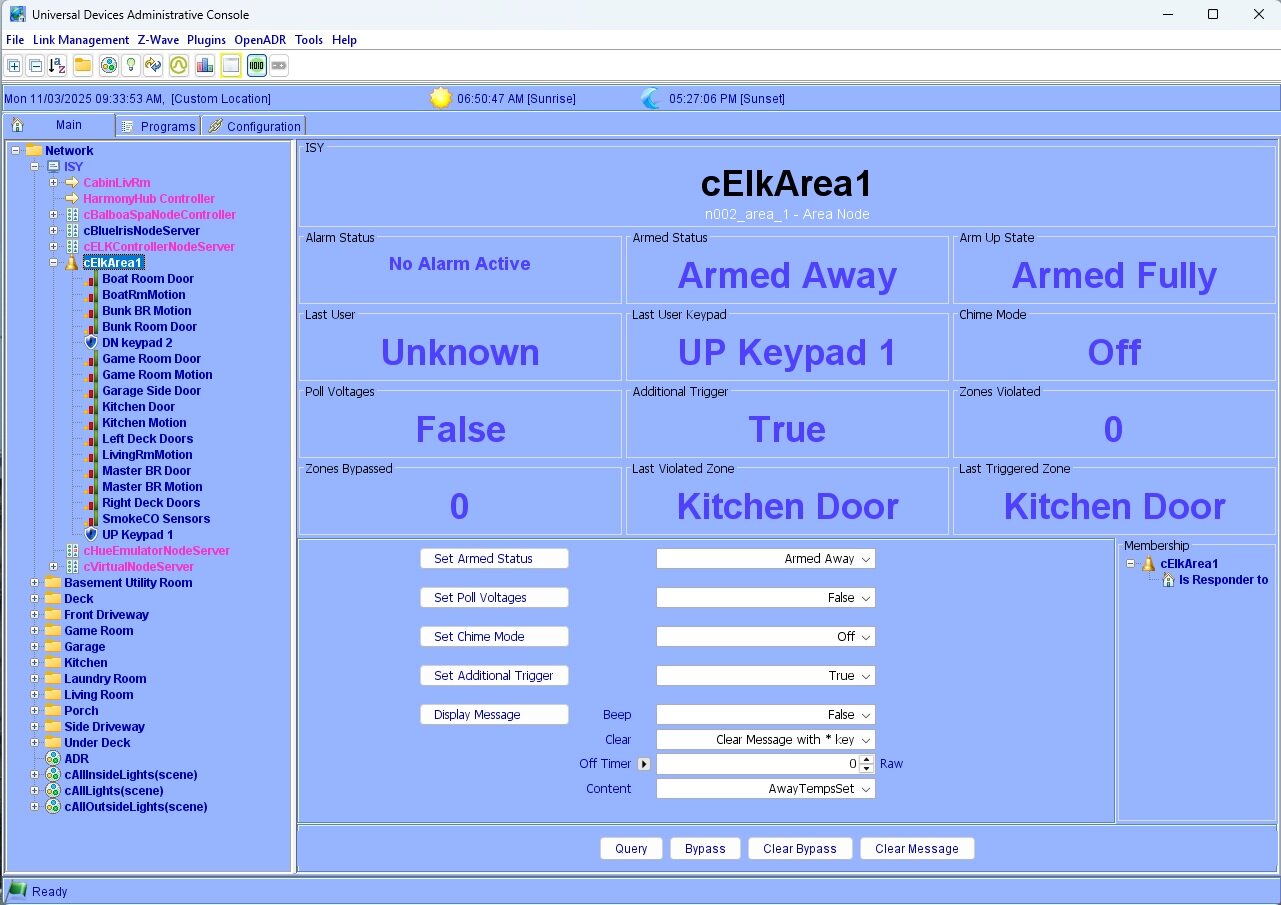 Posted 10 hours ago10 hr I have an Elk node server that appears in the admin console as shown in the screen shot below:This is how the tile looks if I use the "Add Tiles" button to add the Elk node server to the eisy-ui home page:So the four buttons at the bottom of the Admin Console Elk node are present, but lets say for example I want the functionality of the Admin Console "Set Armed Status" button and corresponding pulldown selection to be added to the tile. Can this be done, and if so, how?
