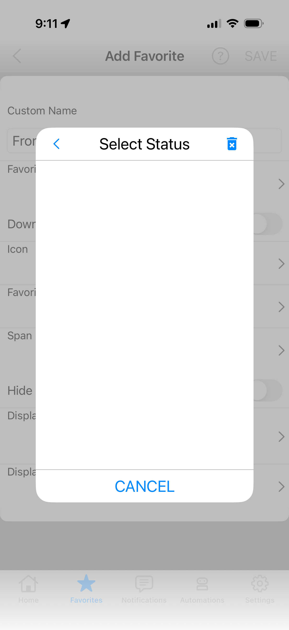 13 hours ago13 hr I am running UDM 1.4.11 (260) and noticed that 1 of 2 Eisy sites lost all of the favorites. Tried to use backup but app froze. Had to delete app, then re-download, then could restore using backup. However, some favorites were not there, so I tired to add back. Attached is what happens when I try to add a door lock. After adding the node, "Display Status" appears, but when this required area is opened, there is nothing to select. End result is that I cannot add the door lock. Running iOS 26.2, IOX 6.0.4